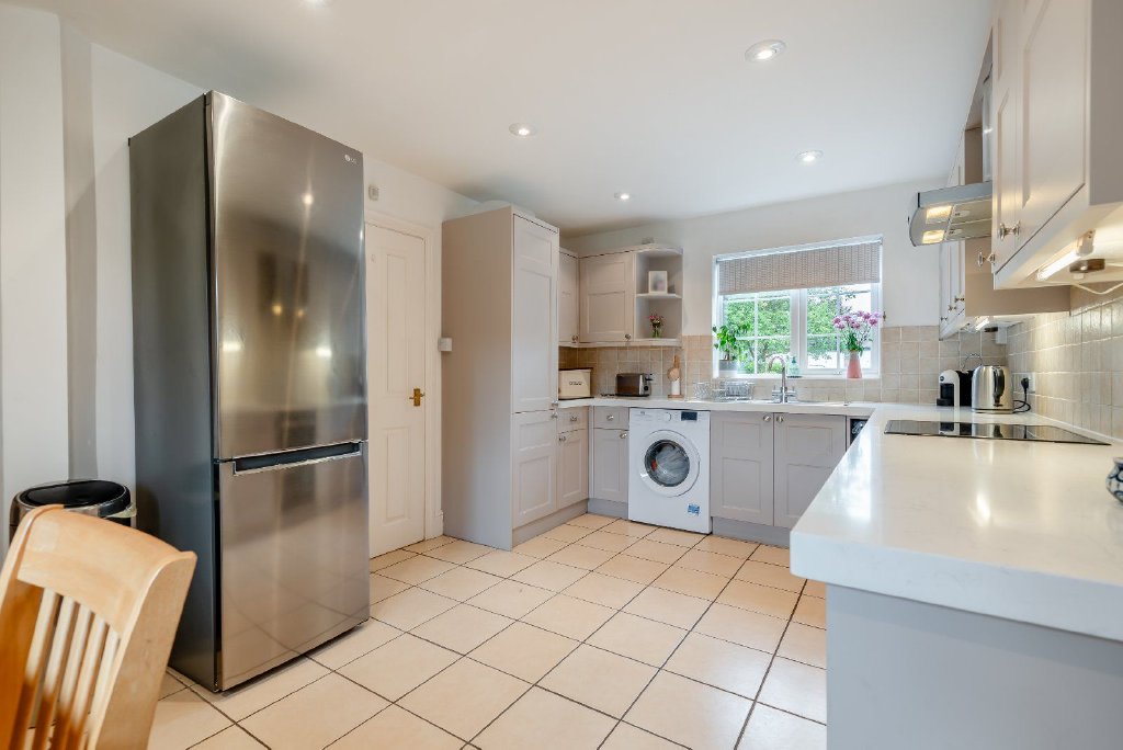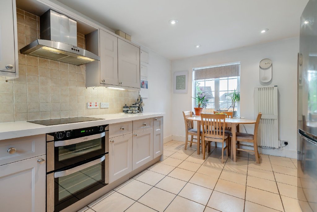 8 Greenhill Place is an attractive modern double-fronted family home offering flexible accommodation arranged in a T-shaped configuration over three light filled floors. Configured to provide an ideal family and entertaining space, the ground floor accommodation flows from a welcoming entrance hall with useful storage and cloakroom. It comprises a large triple aspect family room with wooden flooring, a fireplace with inset woodburning stove and French doors to the terrace, and a generous kitchen/breakfast room with a range of wall and base units, quartz worktops, and a door to a spacious vaulted dining room with two sets of French doors to the garden. On the first floor the property offers a substantial dual aspect bedroom along with a good sized family bathroom. There are two further bedrooms which are currently used as an office and a library. On the second floor are two vaulted double bedrooms, both with fitted wardrobes. The principal bedroom has an ensuite bathroom with separate shower. Outside