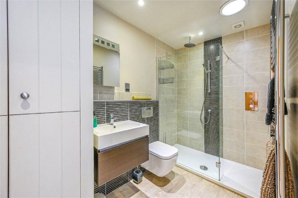 A guest bedroom offers its own ensuite shower room and access to a sunny balcony, providing a secluded escape overlooking the rear gardens. Two additional double bedrooms offer comfort and serenity, sharing access to a luxuriously appointed bathroom featuring a sumptuous freestanding roll-top bath.
