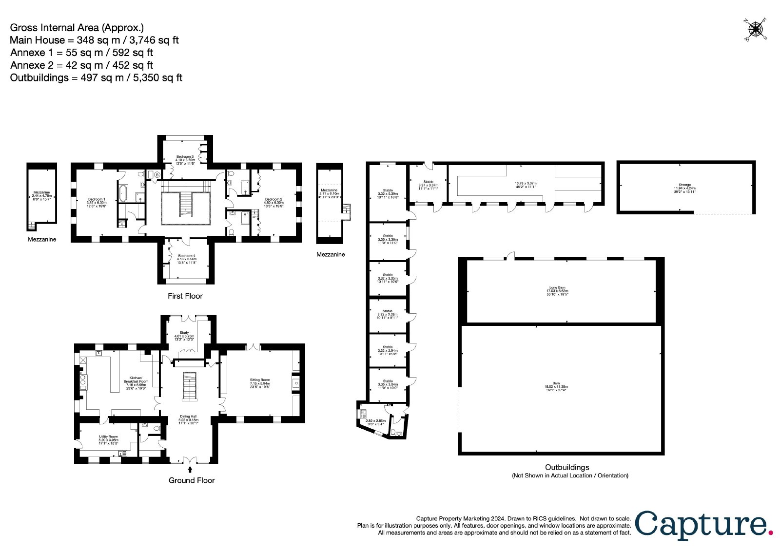 Reception hall • Dining hall • Kitchen/breakfast room • Sitting room • Study • Principal bedroom with walk in wardrobe and en suite bath/shower room • Guest bedroom with en suite shower room • Two further double bedrooms • Family bathroom • Cloakroom with W.C • Utility room