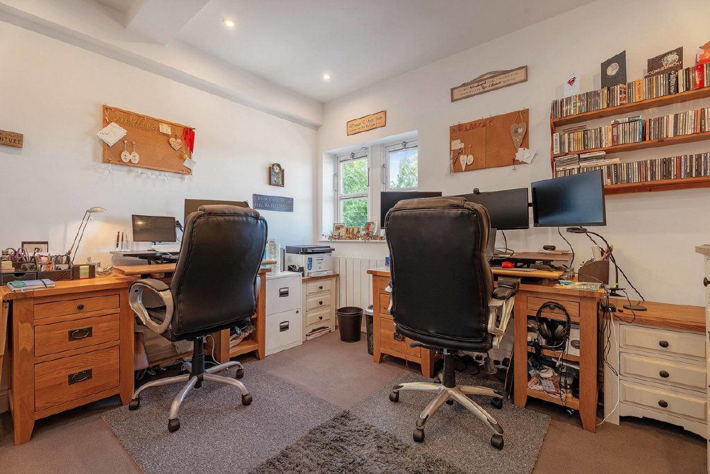 Downstairs there are two double bedrooms, the main bedroom has built-in wardrobes and a contemporary en-suite bathroom featuring Porcelanosa tiles, a wash hand basin, shower and w.c. as well as a heated towel rail and underfloor heating. Bedroom 2 is currently being used as an office but works equally well as a second bedroom. The main bathroom has Porcelanosa tiles, a bath with shower over, a wash hand basin, w.c. and heated towel rail and underfloor heating.