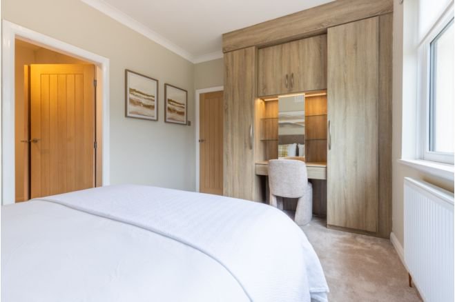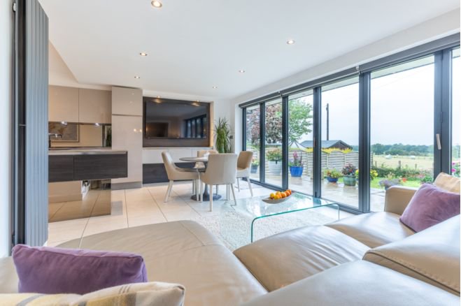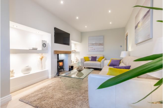 Exquisite modern detached bungalow, perfectly positioned on a generous plot that seamlessly blends stylish living with expansive outdoor space. Nestled in a tranquil yet convenient location, this property offers the ideal retreat for those seeking spacious single-level living with contemporary comforts. Welcome to this stunning modern detached bungalow, set on a generous plot, offering a perfect combination of stylish living and outdoor space. Situated in a peaceful location, this property is ideal for those seeking spacious single-level living with contemporary comforts and ample room to enjoy the outdoors. Nestled in a quiet yet convenient location, this bungalow provides easy access to local amenities, including shops, parks, and transport links, while offering a serene retreat from the hustle and bustle. Whether you're a family, professional, or retiree, this property caters to a wide range of lifestyles. Set on a large plot, the property boasts a beautifully landscaped front garden and an expansive driveway with ample parking for multiple vehicles. The generous rear garden offers endless possibilities for outdoor activities, gardening, or creating your dream outdoor entertaining space, with plenty of room to enjoy the fresh air and privacy. The undisturbed views are breathtaking along with fantastic sunsets making this a truly unique property. Step inside to discover a brand new hallway/ lounge with a logburner and open plan flow through to the kitchen diner creating a bright modern feel. This bungalow has been designed with contemporary living in mind, offering comfort, style, and functionality throughout.