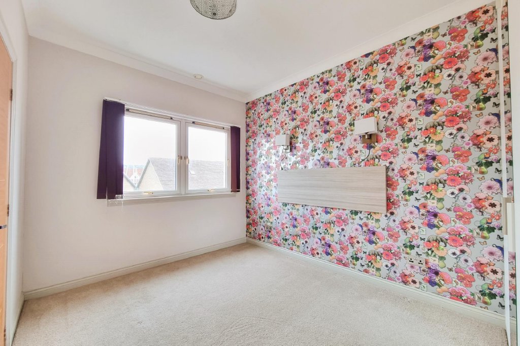 BEDROOM 3/HOME OFFICE 12' 4" decreasing to 4'7" x 11' 7" decreasing to 6'2" (3.76m x 3.53m) L shaped, double glazed window to front aspect, wood laminate flooring, chrome fronted power points, ceiling spotlights, controls for ceiling heating, door to:
