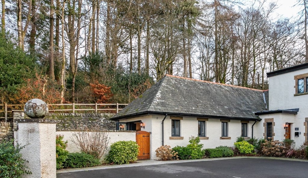 Rare in a country house conversion, New Lodge has its own front door so enjoys a degree of independence whilst still benefitting from being part of this small and select residential community. A major selling point is the delightful courtyard garden which provides a private and enclosed walled outside space, ideal if you have young children or dogs. Here you will find space to recline, wine and dine and importantly enjoy the hot tub after a day on the fells. Beyond the courtyard garden is a private parking space, further visitor parking, beautiful landscaped communal gardens and woodland, secure cycle storage and a shared bin/recycling store.