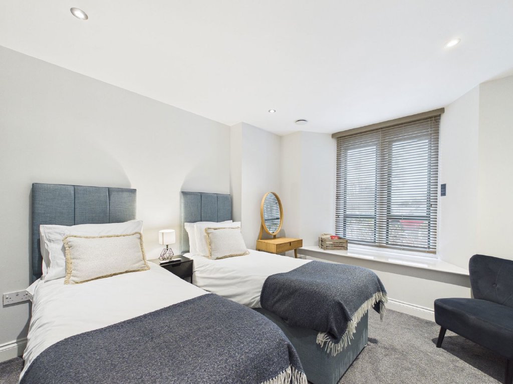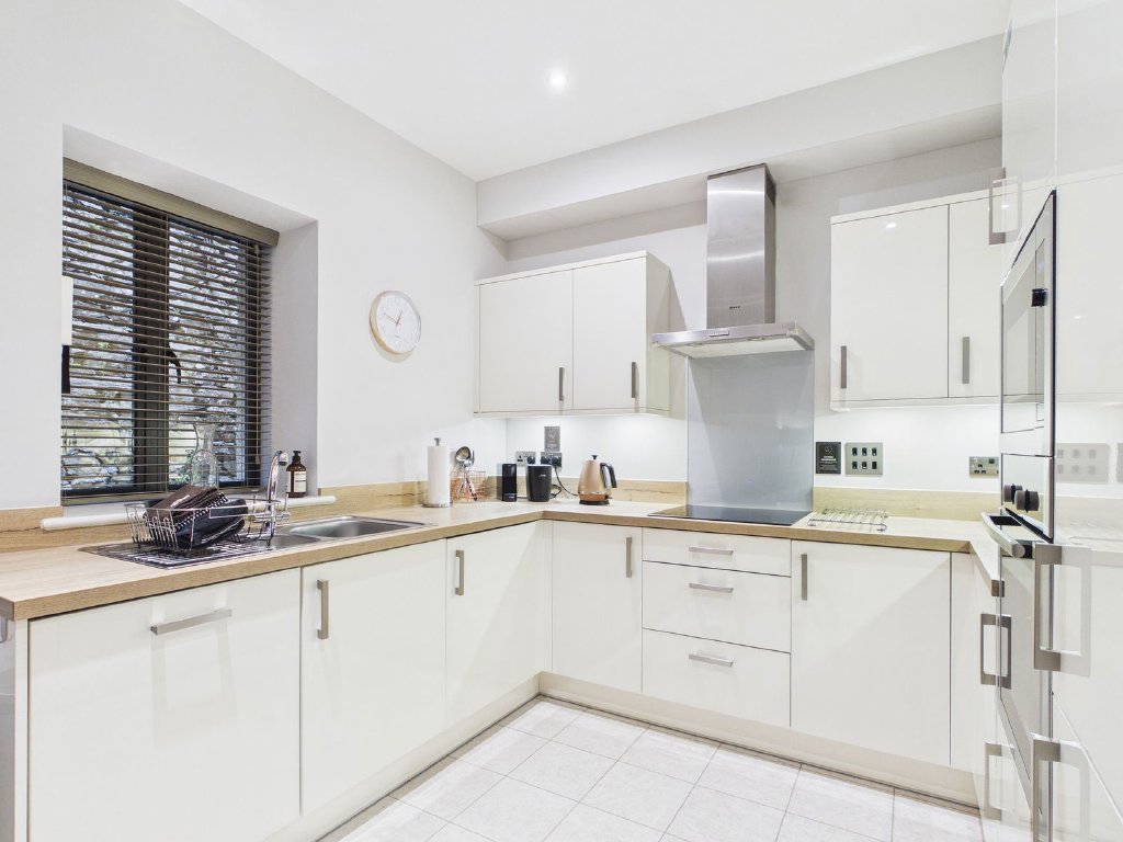 A private courtyard garden, fully enclosed and screened with a high wall is accessible from the open plan living kitchen through bi-folding doors enabling the inside and outside spaces to merge in warmer weather when the garden becomes an extra room. There’s also a solid wooden pedestrian gate from the car park for ease of access.