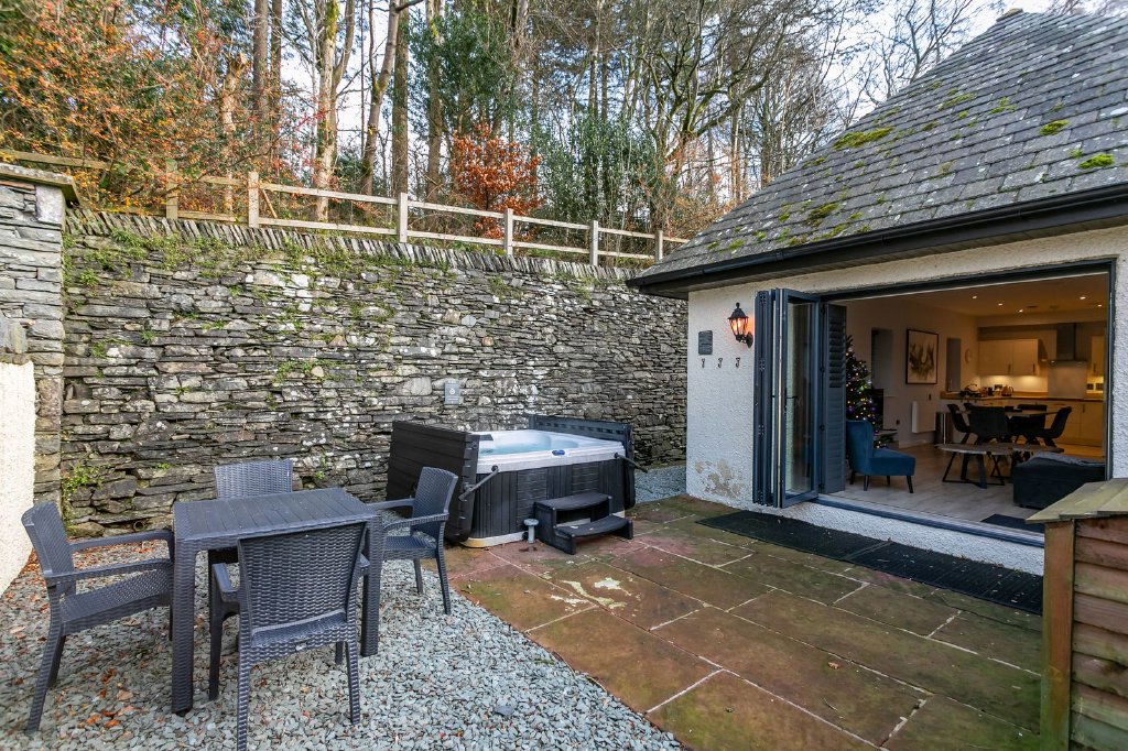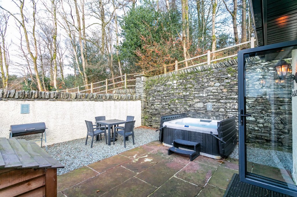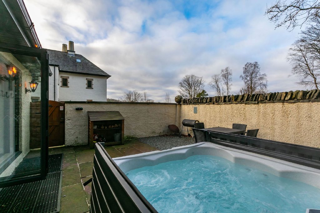 - Private, enclosed courtyard garden with hot tub