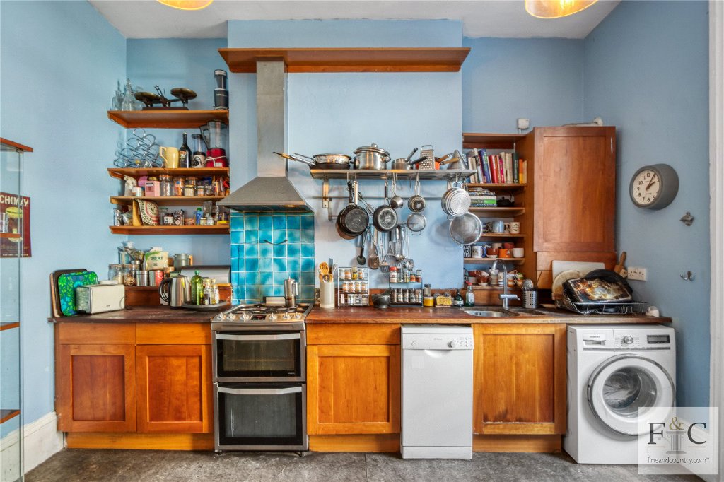 Fabulous three bedroom conversion set over the raised and lower ground floors of this imposing Victorian residence boasting a private garden to the rear. A West facing bay fronted living room with stripped wooden floors, a period fireplace and attractive high ceilings separate from the very well apportioned kitchen dining room overlooking the garden.