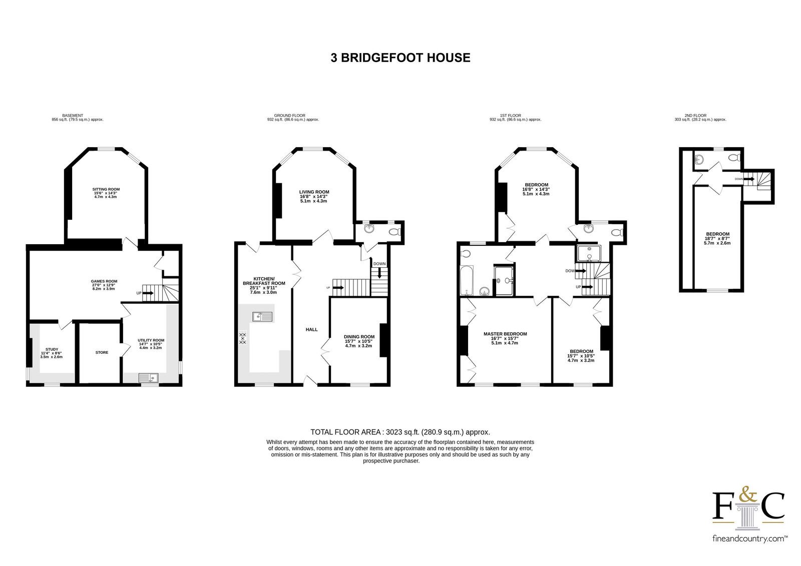 - Set on 4 levels and approximately 3023sq ft of accommodation