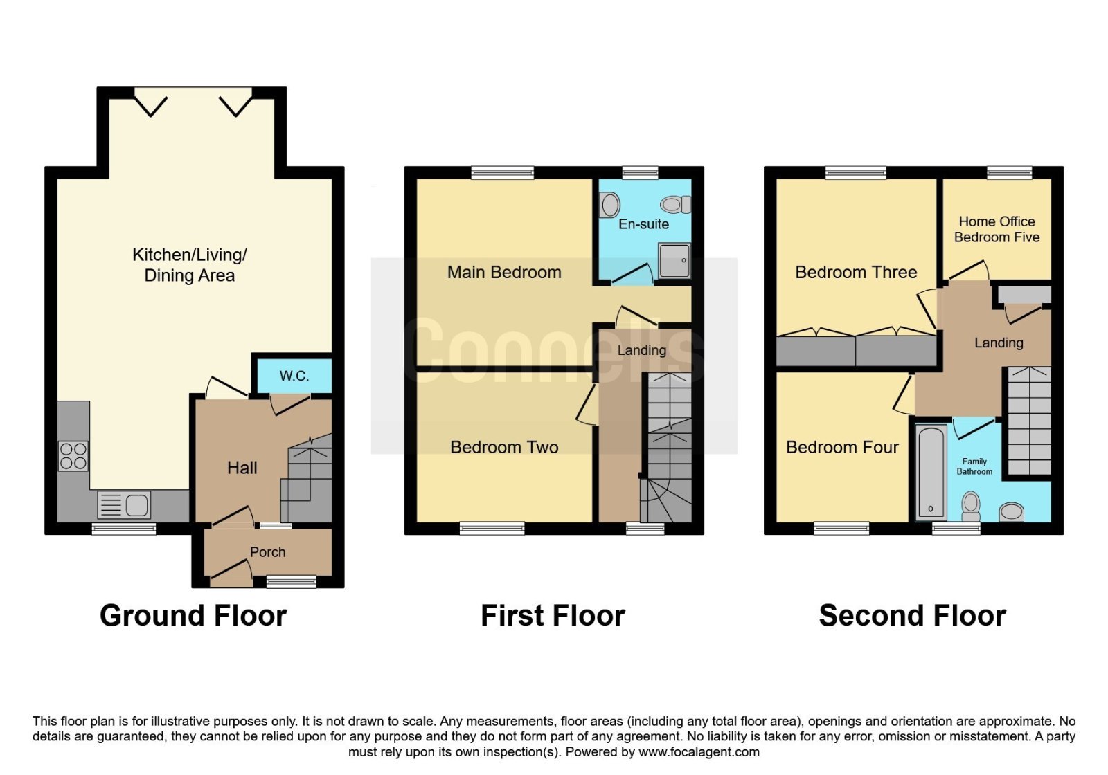Stairs rise from the first floor landing. Doors lead off to the home office/bedroom five, two further bedrooms and the family bathroom. Access to the loft space and airing cupboard housing the hot water cylinder.
