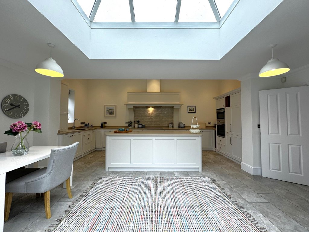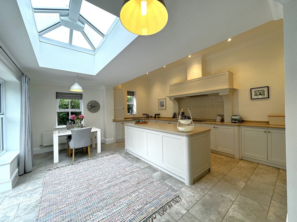 - Stunning kitchen/dining room with island and lantern roof