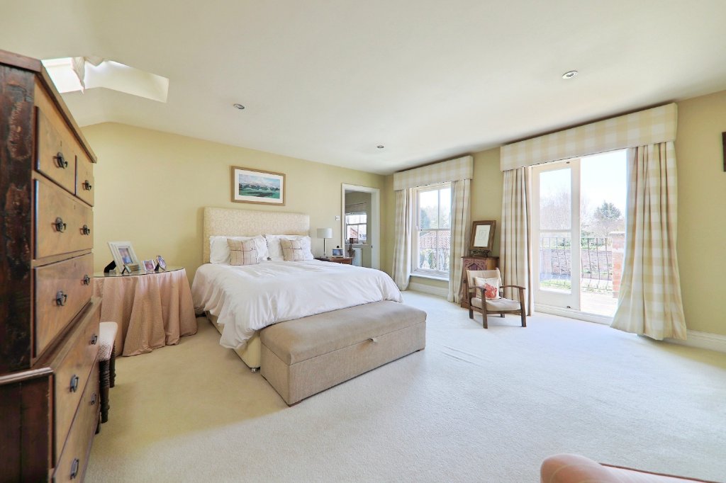 Upstairs, the landing is large and light, with more French doors out onto a first-floor balcony. The master suite is spacious and feels a bit tucked away from the rest. There are four other double bedrooms and three bathrooms, so there’s plenty of flexibility whether you’ve got a large family or just like to have guests stay.