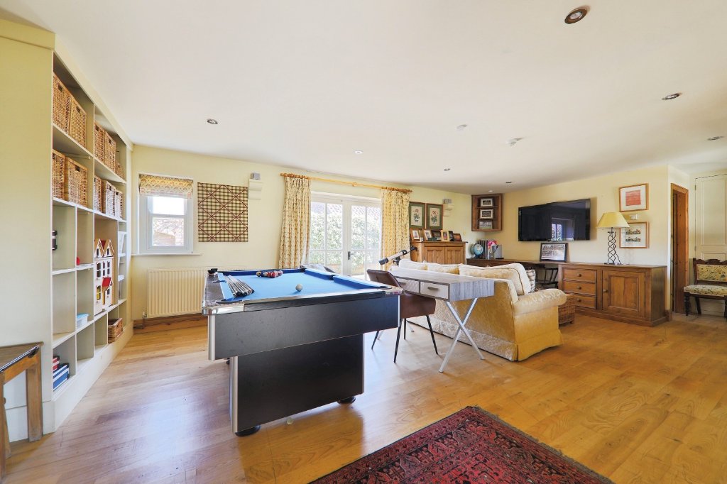 One of the standout features is the leisure wing, which includes an indoor pool, spa pool, games room and gym. The outside space is just as impressive, with a full-size floodlit tennis court, tennis pavilion, garden office, large paddock, and a Dutch barn. There are scheme plans drawn for ‘glamping’ on the paddock, but no planning application has been submitted.