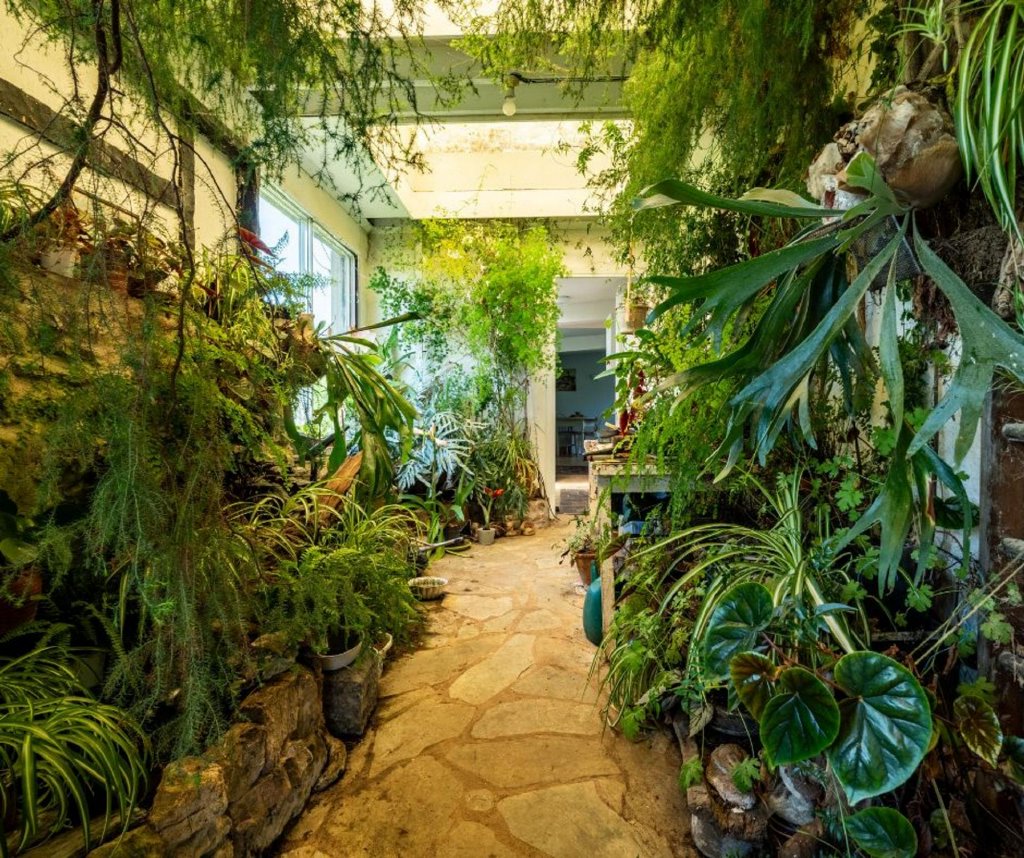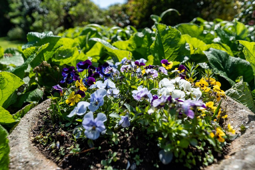 - Mature trees, hedges, and flowering borders
