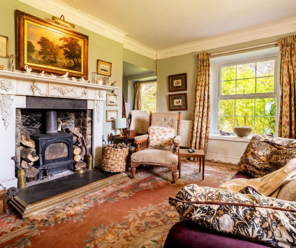 Enter through a welcoming stone porch into a spacious, light-filled home that blends period charm with everyday practicality. The dual-aspect living room features an impressive inglenook fireplace and wood-burning stove, while a peaceful study/home office and beautiful conservatory/fernery offer quiet spaces to work or relax. The central dining room frames views through to the conservatory, and the handmade, free-standing kitchen units have been crafted to incorporate original early Victorian dairy doors found within the house. The oil-fired Stanley range serves both cooking and the central heating system.