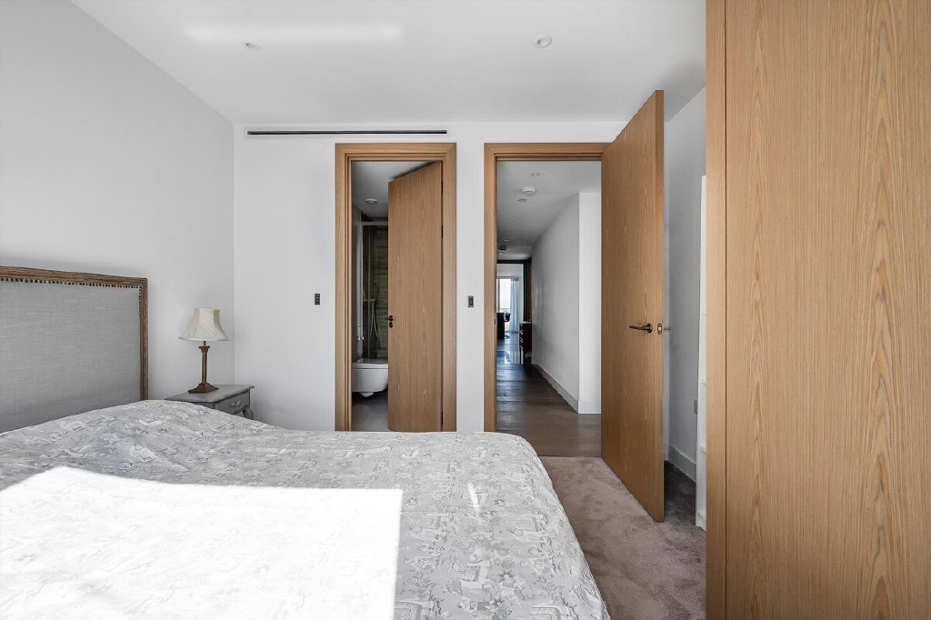 Situated on the 17th floor of the prestigious Admiralty House within the London Docks development, this exceptional three-bedroom, three-bathroom apartment offers 1,264 sq ft of thoughtfully designed living space with sweeping views towards Tower Bridge and The City.