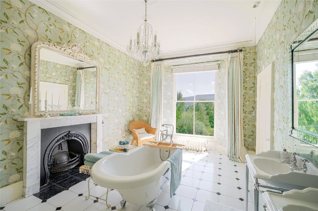 Upstairs there are eight generous bedrooms including the exquisite principal suite with a large triple aspect bay window with Juliette balcony, a luxury en suite bathroom with freestanding roll top bath and separate walk-in shower, an adjoining study and a large, fitted dressing room.