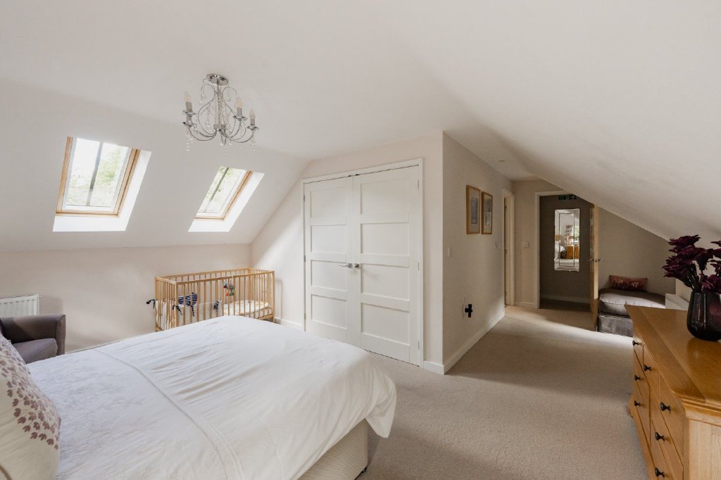 detached house which was significantly extended from a period cottage, situated in an elevated position close to woodland in the popular South Norfolk village of Bergh Apton. A bright glazed entrance hall leads into the spacious kitchen breakfast room with kitchen island and breakfast bar, which is semi open plan with a seating area at one end and a dining area at the other. To the front of the property is a separate sitting room and a reception room with staircase upstairs. Ground floor accommodation is complete with utility room and downstairs shower room. Upstairs is the principal bedroom with fitted wardrobes and en suite shower room and dressing room. Adjacent to this is a similarly sized double bedroom also with en suite shower room. There are a further two bedrooms and a separate family bathroom, as well as plenty of eaves storage. The property is immaculately presented throughout with lots of natural light. In the rear garden is a one-bedroom annexe with sitting room, bedroom and shower room.