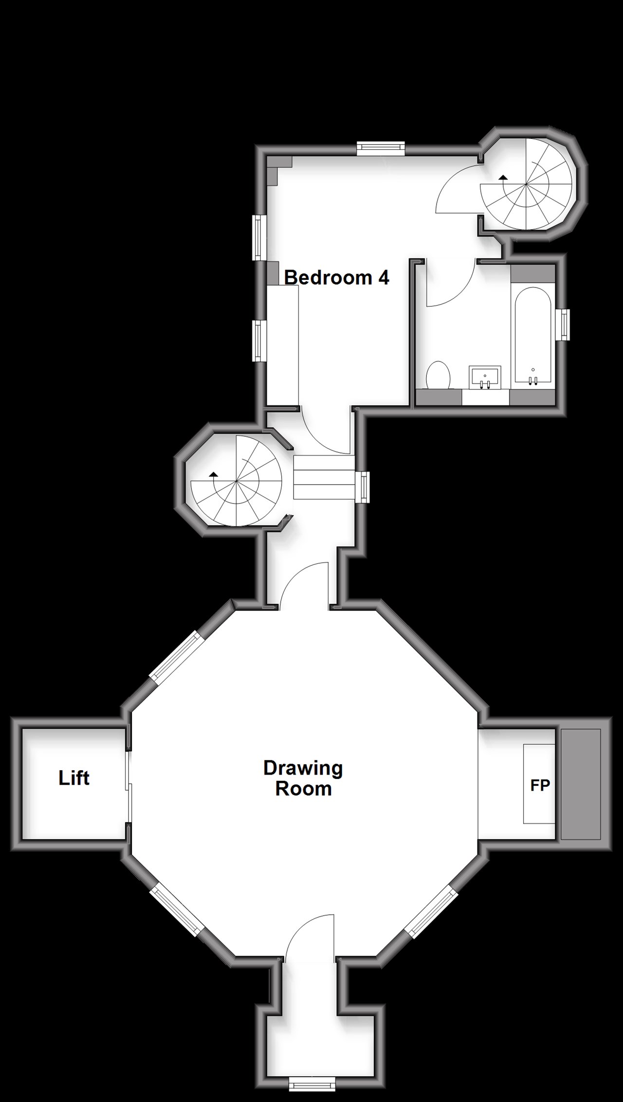 There are three entrances to the tower and the main double height arched front door leads to a lobby with an original brick floor and a fascinating octagonal reception hall with interesting displays, terracotta flooring and, fortunately, a contemporary lift to the first four floors. There is also a utility room, cloakroom, boiler room and boot cupboard, a pair of original oak external doors and access to the main circular staircase and an outer secondary circular stone staircase.