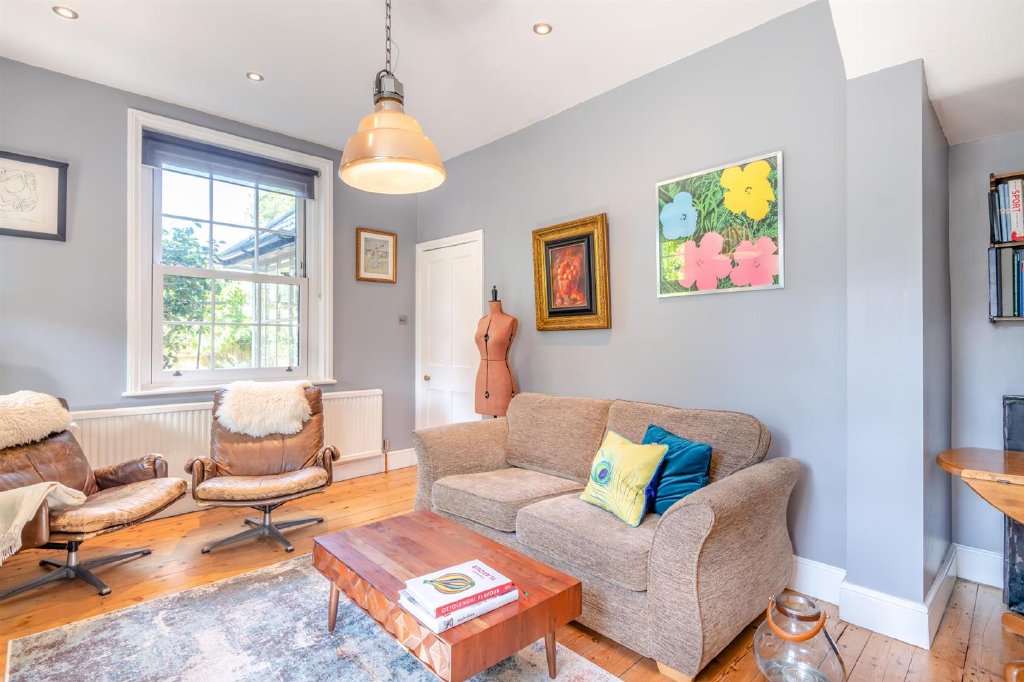 Inside, the property boasts a bright and spacious kitchen with a skylight window, elegant marble-tiled bathrooms with underfloor heating, and beautifully preserved original parquet and pine flooring throughout. Sash-style double glazing adds charm and efficiency.