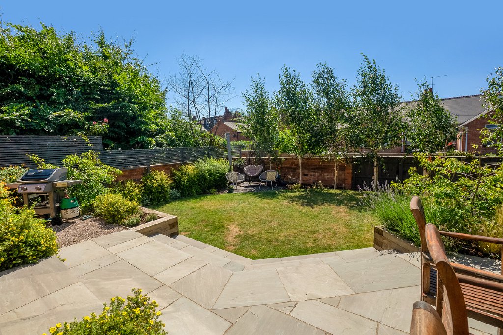 The landscaped walled garden maximises the space and carefully planted trees provide a good degree of privacy. The beautiful Indian sandstone terrace provides a wonderful area for entertaining and al fresco dining with raised flower beds and stairs leading down to a lawned area and a further patio at the end of the garden perfect for relaxing in the shade with a good book or watching the kids play.