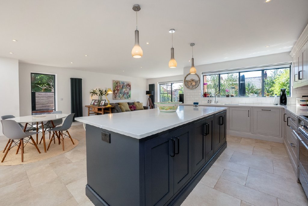 This stunning three-story town house in the heart of Warick, features a beautiful open plan kitchen, dining and living room, three further reception rooms, five-bedrooms and three-bathrooms. High-end finishes include Crittall windows, Oak flooring, and a landscaped garden designed by local specialist Susanna Brown.