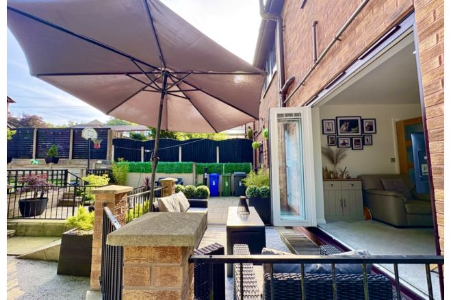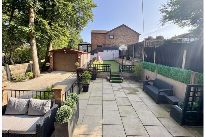 A rare opportunity to acquire a spacious and beautifully extended family home nestled within a peaceful cul-de-sac in the highly sought-after area of Mossley. This freehold property boasts generous room dimensions throughout, offering ample space for comfortable living. Recently modified and extended, the property sits on a large plot with a generous south facing rear garden, perfect for outdoor entertaining and family fun. Located just a short stroll from Top Mossley village, the home benefits from stunning countryside views and scenic walks nearby. The area is renowned for its excellent amenities, including a variety of shops, primary schools, and Mossley Hollins High School within the catchment area. Transport links are excellent, with Mossley train station providing direct routes to Manchester city centre and Huddersfield, making this an ideal location for commuters. Inside, the property features a fully integrated modern kitchen and a separate dining room, ideal for family meals and entertaining. The spacious lounge is bright and airy, with elegant folding doors that open directly onto the garden, creating a seamless flow between indoor and outdoor living spaces—perfect for alfresco dining and relaxing summer evenings. Every room has been thoughtfully maintained and updated by the current owners, with a full rewire completed in 2021, a new combination boiler installed in 2022, and partial loft boarding with lighting and a loft ladder for extra storage. Modern comforts are assured with new radiators throughout, a house alarm system, and hard-wired smoke and heat detectors. The first floor accommodates four well-sized bedrooms, including a master with an en-suite, alongside a family bathroom. The exterior of the property is equally impressive, featuring a large corner plot with a driveway that comfortably fits two cars and a substantial detached garage. The side extension in 2021 adds further versatility and space to this already impressive home.