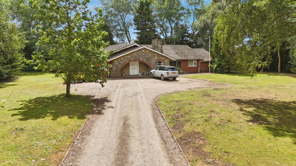 SummaryAccessed via a long, sweeping driveway, the property is set back from the road and includes AMPLE PARKING for multiple vehicles. The grounds extend to an enclosed PADDOCK area at the rear, suitable for a variety of uses, including leisure, animals, or potential hobby farming.
