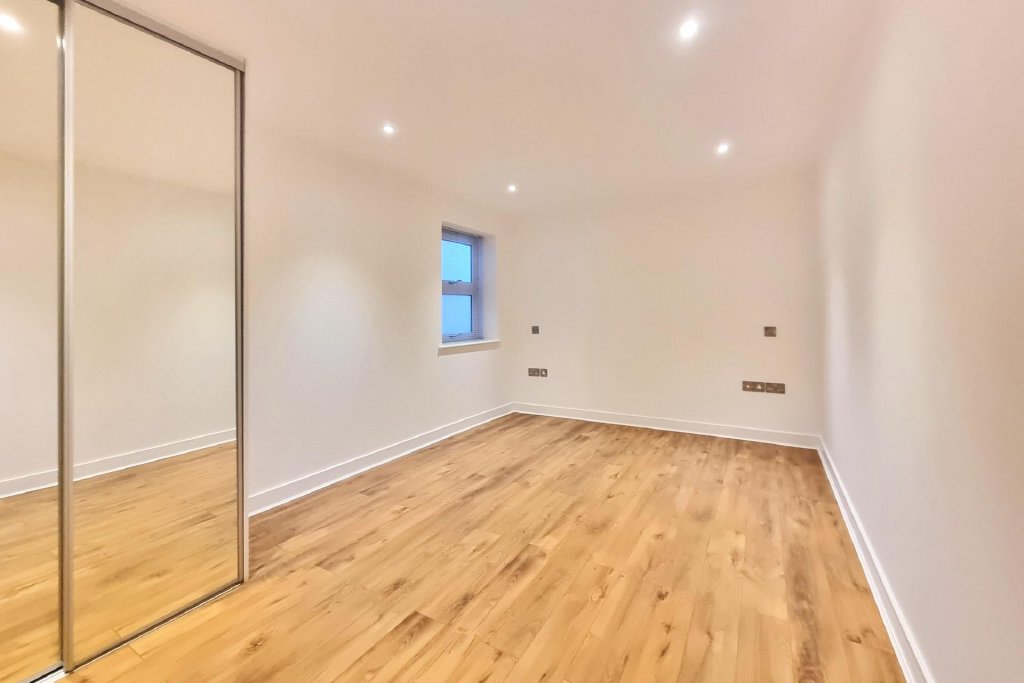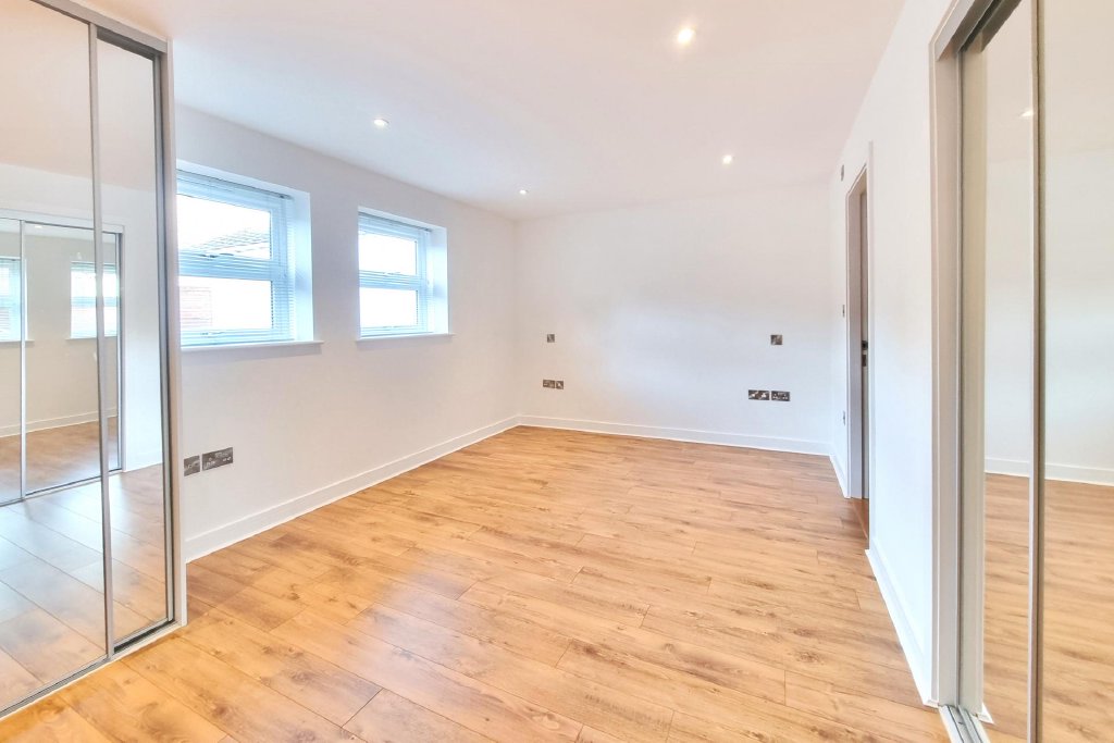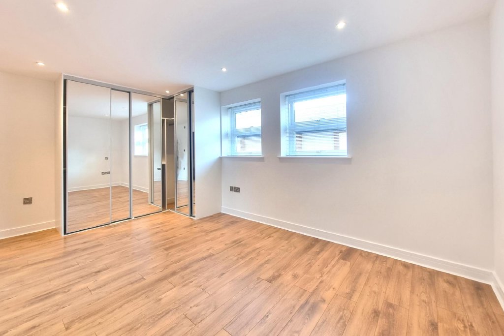 BEDROOM 2 16' 7" x 10' 0" (5.05m x 3.05m) Wooden flooring with underfloor heating, double glazed window to rear aspect, range of built-in furniture including mirror fronted wardrobes, ceiling spotlights.