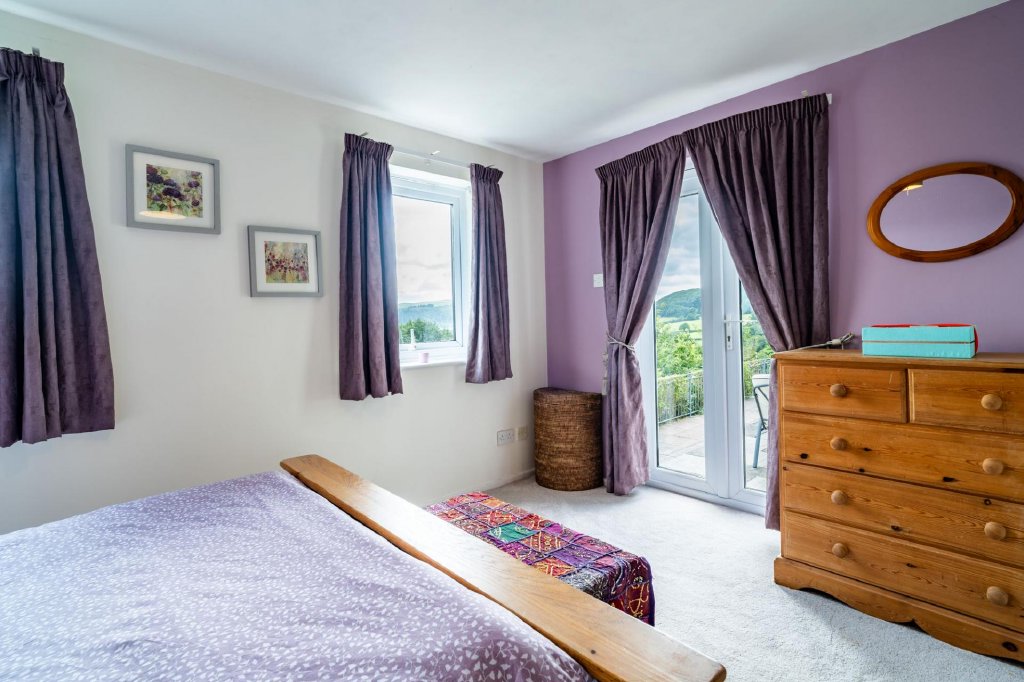 The four bedrooms are positioned privately to the rear. The principal suite is bright and tranquil, with its own en-suite shower room, double built-in wardrobes, and access to a raised sun terrace overlooking the hillside. A modern family bathroom and built-in airing cupboard complete the accommodation.