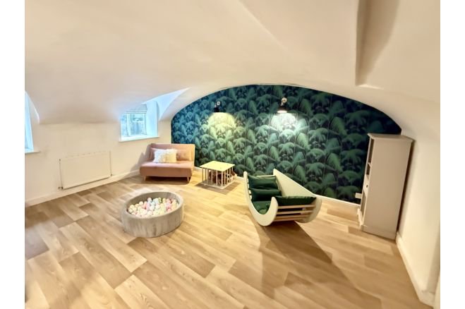 The End Wing of Turton Hall Nestled within the highly sought-after village of Gildersome, this exceptional residence forms the end wing of the prestigious Turton Hall. Arranged over four expansive levels, this beautifully restored home blends timeless architectural features with sophisticated modern living. This is a rare opportunity to secure one of three residentials properties within one of Gildersome’s most iconic residences. Early viewing is highly recommended to truly appreciate the scale, quality, and lifestyle on offer. Ground Floor You’re welcomed by striking herringbone flooring and a rich sense of character. The lounge is warm and inviting, centred around a charming wood-burning stove. The adjoining kitchen-diner is thoughtfully designed with modern units, extensive worktops, integrated appliances, and ample storage — perfect for both family life and entertaining. First Floor The principal bedroom is a calm retreat, complete with built-in wardrobes and period charm. Across the landing lies a standout family bathroom, finished to an impeccable standard with underfloor heating, a walk-in shower, freestanding roll-top bath, twin sinks, and an exposed brick fireplace, offering spa-like luxury at home. Second Floor On the top floor, you’ll find three further double bedrooms — two with characterful exposed beams — alongside a stylish shower room, ideal for a growing family or hosting guests. Lower Ground Floor The lower level features a practical utility room with fitted units and plumbing, as well as a second reception space, perfect as a home cinema, games room, or private workspace. Outdoor Space To the front, a private stone patio and lawned garden provide a peaceful oasis, complemented by access to the well-maintained communal grounds. The property also benefits from off-street parking for two vehicles.