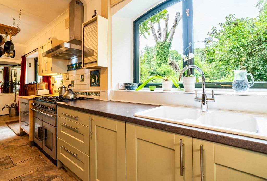 Tyllwyd combines period charm with modern eco-conscious features. A roof-mounted solar thermal array provides hot water for the home, while a 4kW ground-mounted solar PV array supplies electricity and feeds into the national grid under an index-linked Feed-in-Tariff running until 2037. These installations support lower energy costs and contribute to sustainable living.