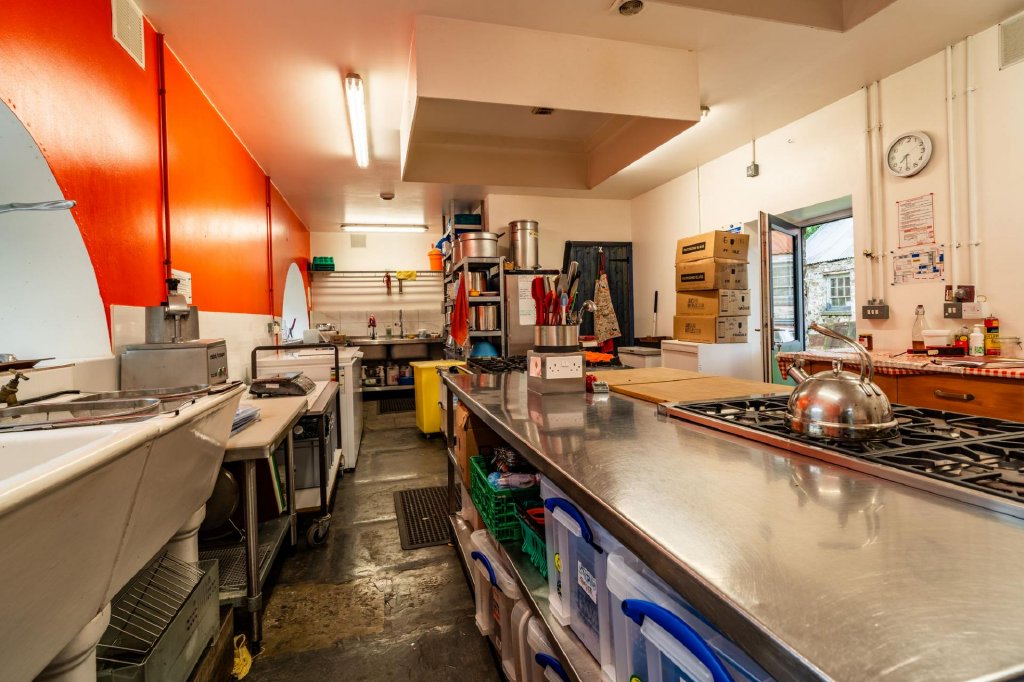 One wing of the house hosts a self-contained annexe – a charming addition with a sitting room featuring a wood burner in an inglenook fireplace, a fitted kitchen, a double bedroom with built-in wardrobes, and a private en suite. This wing also offers direct access to the courtyard and commercial kitchen, making it ideal for hospitality ventures.