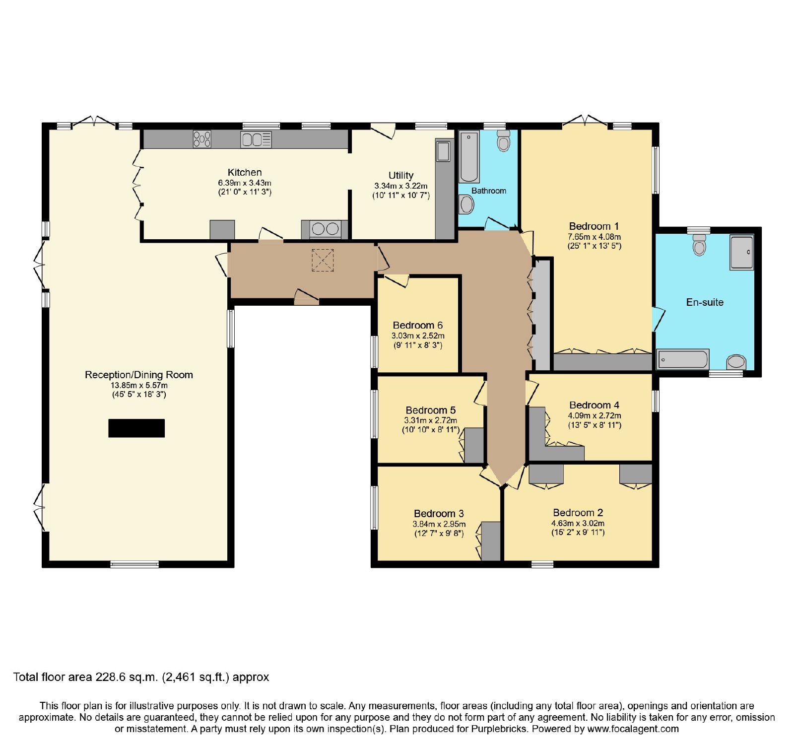 Cottleston Farm is a substantial and elegant countryside residence set within approximately 2.5 acres (TBV) of mature, beautifully stocked gardens. Approached via its own private driveway, the property benefits from generous parking space for multiple vehicles. A secondary pedestrian entrance adds convenience and accessibility to the layout. Following over 30 years of cherished ownership, the land has been thoughtfully reconfigured with two outbuildings having been separated and are being converted into private residences to be retained by the current owners—allowing them to downsize whilst remaining rooted in this stunning rural location. The property offers a well-proportioned and versatile internal layout: A grand Reception/Dining Room spanning circa 13.85 m × 5.6 m (45'4″ × 18'3″)—ideal for entertaining or family gatherings. A spacious Kitchen measuring approximately 6.4 m × 3.4 m (21'0″ × 11'3″), adjacent to a useful Utility Room (3.34 m × 3.22 m / 10'11″ × 10'7″) Six well-scaled bedrooms: Bedroom 1 (largest) with an impressive en-suite, measuring 7.65 m × 4.08 m (25'1″ × 13'5″). Bedrooms 2 through 6 range from approximately 3 to 4.6 m in length, providing flexible accommodation for family, guests, or home office use and all (bar one) with fitted wardrobes/storage. A central family bathroom serves bedrooms 2-6 & guests. The property has fifteen solar panels located on the SE roof above the living area. Planning permission (24/03269/FULL) has been approved for a triple garage block and a substantial extension incorporating the courtyard and a loft extension to provide a large, first floor bedroom with en-suite and resulting in significantly increased usable loft storage area. This property represents a rare opportunity: a spacious, adaptable home with scope for further development, with substantial grounds, set in a highly regarded location that seamlessly blends rural peace with community spirit, beautiful scenery, and commuter practicality.
