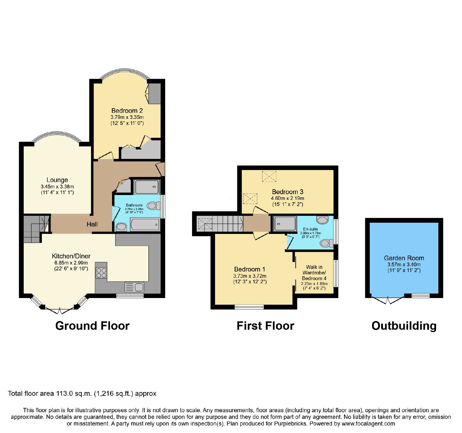 - Private rear garden with out building