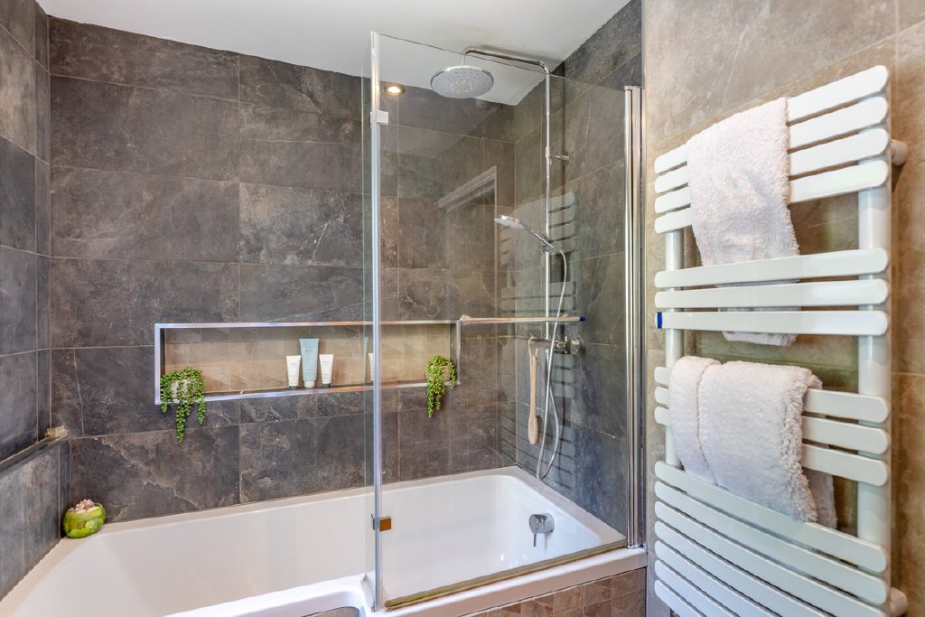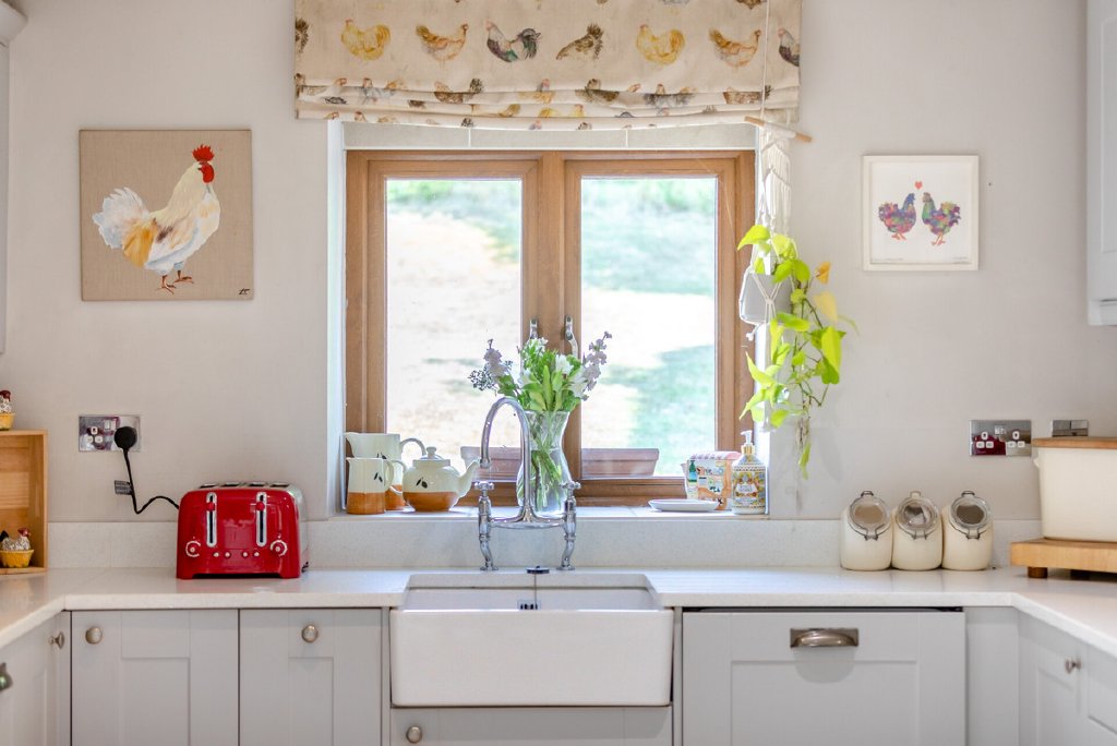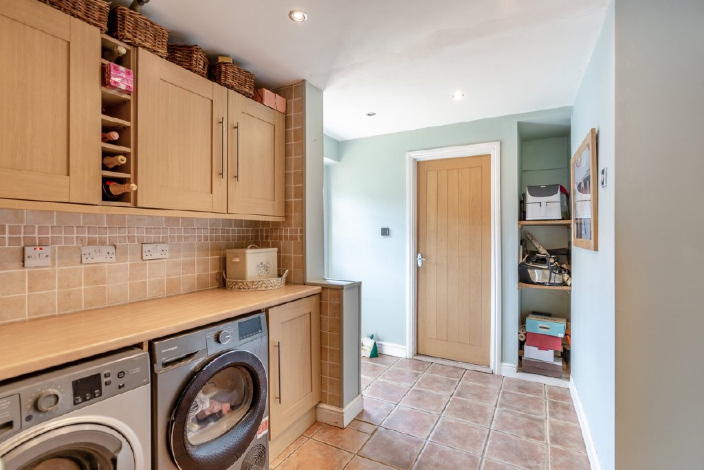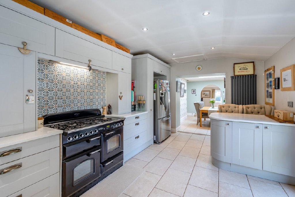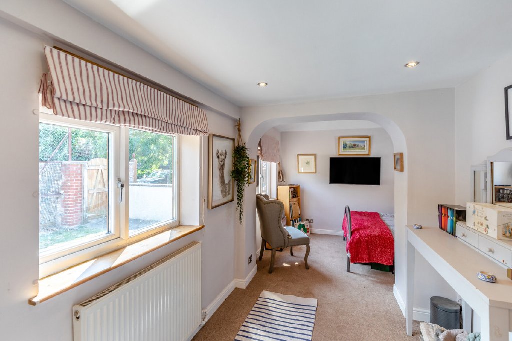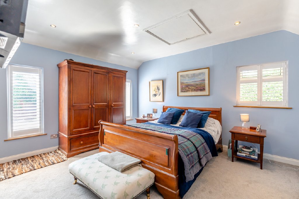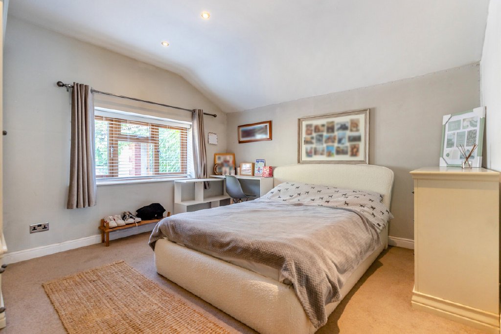 The main house has been thoughtfully designed to combine light-filled living with flexibility for modern family life. A generous sitting room with high vaulted ceilings, oak flooring and a wood-burning stove creates an impressive central space, flowing into an open-plan kitchen and dining area with direct garden access. Four bedrooms and two bathrooms are arranged with versatility in mind, including a principal suite with en suite, and a wing that can serve as a self-contained annexe if required.