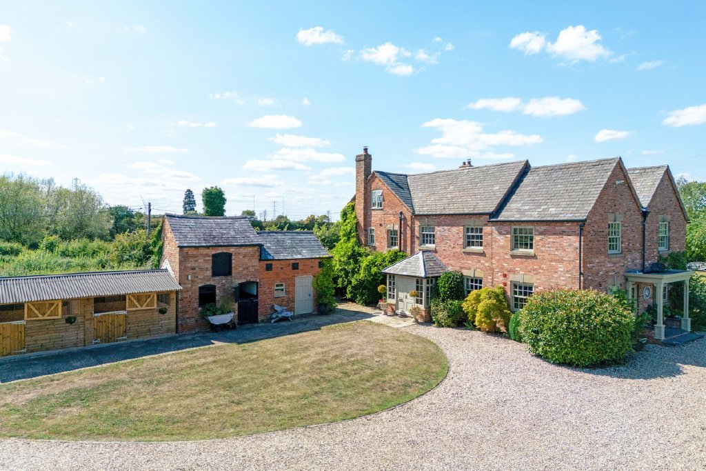 Dating back in-part to 1850, with a major sympathetic extension and renovation in 2003, Woodgate Manor Farm is a beautifully presented, unlisted Georgian farmhouse set within approximately 2.5 acres of landscaped gardens and a paddock, in a highly sought-after semi-rural location with excellent transport links. This substantial detached seven-bedroom residence offers six ensuite bedrooms, four reception rooms, and a wealth of character throughout, such as double-glazed sash windows. The property benefits from a gated entrance, triple garage, newly built stables, and a large multi-room timber outbuilding offering excellent ancillary or home office potential. Combining elegant period living with exceptional equestrian and lifestyle facilities, Woodgate Manor Farm offers space, privacy, and convenience in equal measure.