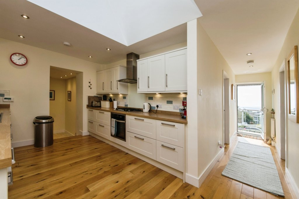 Tucked away in a peaceful and private elevated position, this beautifully presented bungalow offers a tranquil, high-spec home with breath-taking panoramic views and easy access to the town centre and beach. From the moment you arrive, you’ll be captivated by the stunning vistas stretching across the entire Lyme Regis Valley and out to sea. The property is approached by a driveway with space for three vehicles, and steps alongside the front garden lead up to a raised terrace with a sleek glass balustrade – a perfect spot to watch the sun set of an evening. Step inside to a welcoming entrance hall that guides you to the main living areas. The open-plan living room is an ideal space for relaxing, featuring a large, picture window that perfectly frames the spectacular views. Adjacent to the living room is a versatile room with French doors opening onto the rear garden, which could serve as a second double bedroom or an excellent home office. The spacious master bedroom is located at the front of the property, designed to maximize the sea views. It includes a separate dressing room and a contemporary en-suite bathroom. The heart of the home is the kitchen/dining area, complete with space for a range of appliances and a separate utility room for added convenience and storage. Steps lead down from the kitchen to an open-plan dining room; an entertainer’s dream. This space truly brings the outside in with large bi-folding doors and bi-folding windows that open directly onto the rear garden. Just off the dining area is a third optional bedroom, which could also be used as a cosy snug or a children’s playroom. The property also benefits from a modern shower room.