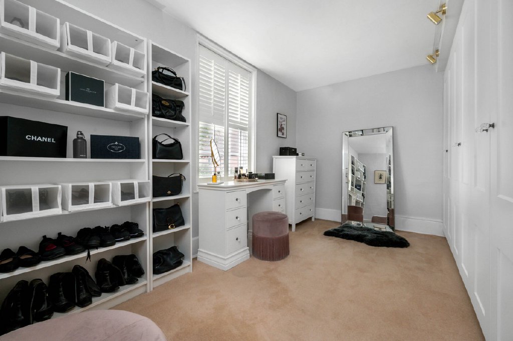 The second bedroom is equally appealing, with the added benefit of direct access to the same rear landing. From here, a further dressing room and a beautifully appointed family bathroom can be reached, ensuring both practicality and comfort for family life or visiting guests.