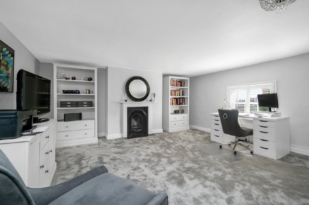 The first staircase continues to the second floor, where a landing gives access to two generously proportioned bedrooms set to the front of the house, as well as a connecting door through to the rear landing and second staircase. From here, further accommodation unfolds, including a third bedroom which opens into a spacious additional room—an ideal private retreat for a teenager, studio, or hobby space. A fourth bedroom and a well-appointed bathroom complete this level, which, like the rest of the home, offers outstanding flexibility for a growing family or those seeking versatile spaces tailored to modern living.