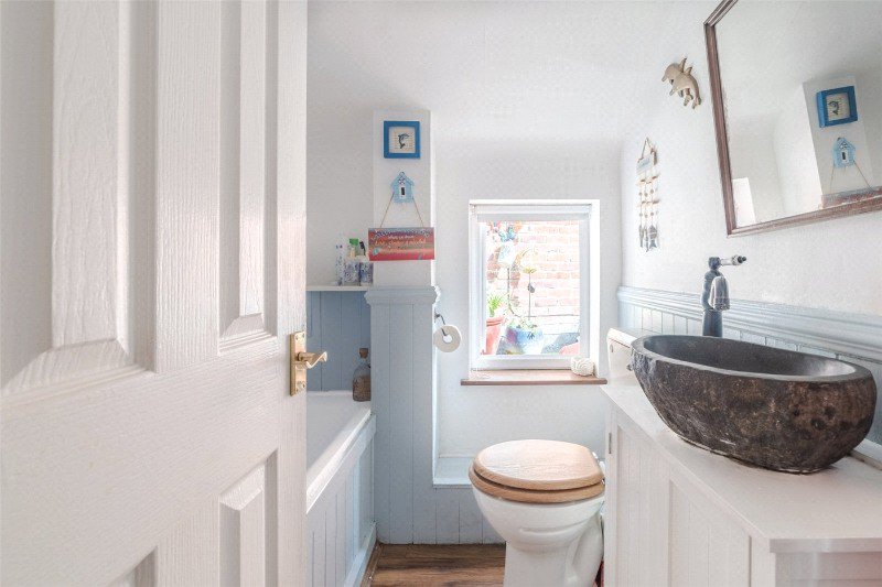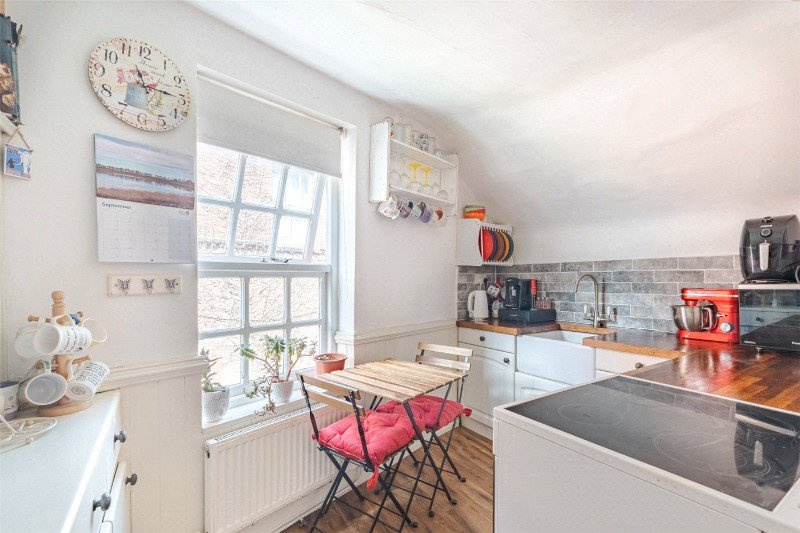 The flat is blessed with plenty of windows, bringing lots of light in, including a beautiful listed arched window overlooking the millstream. Our clients have recently refurbished the kitchen and bathroom, and replaced some of the windows with UPVC double glazing.