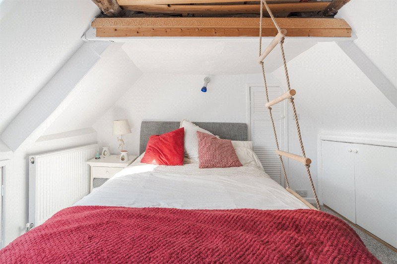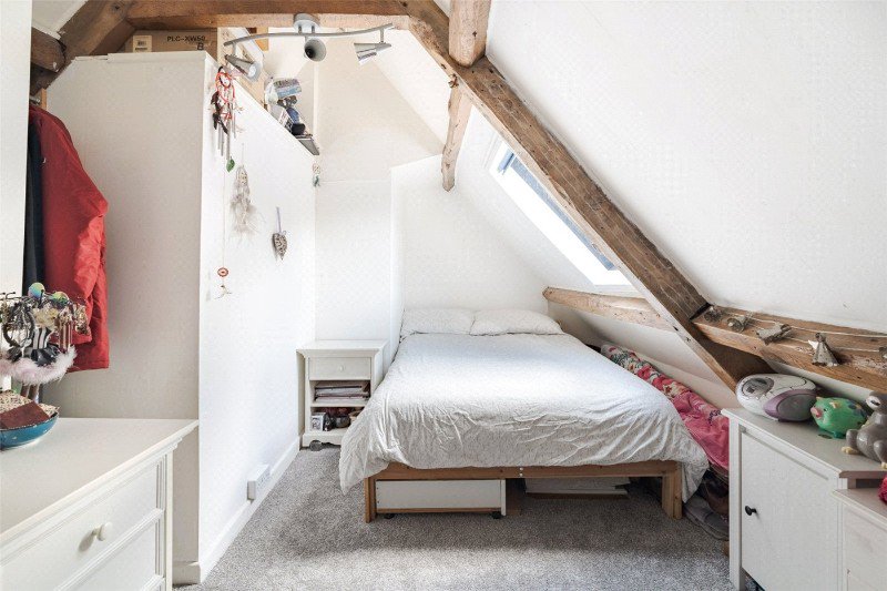 There is an inner hallway with a window to the rear. Bedroom 1 has fitted wardrobes, and a window to the front. From the inner hall, stairs lead to the second floor landing. Bedroom 2 has a vaulted ceiling, an exposed A-frame, and a conservation skylight to the front. Bedroom 3 also has a vaulted ceiling and exposed beams, and its conservation skylight gives a view towards the Minster church.