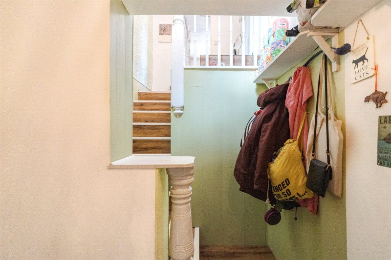 Off the courtyard, a private entrance door leads to a reception hall (with cupboard and coat hanging space). Stairs lead to a first floor landing with a cupboard containing the gas central heating boiler.