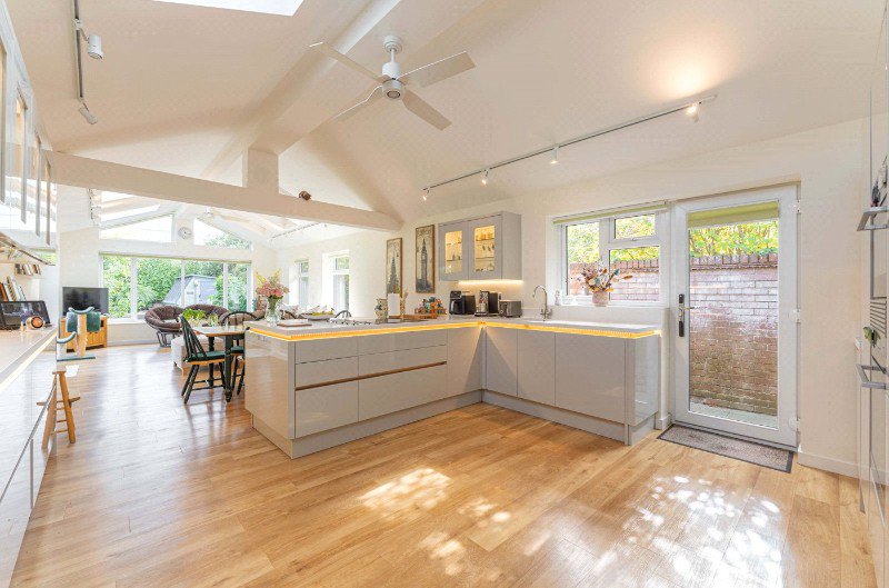 Extending to approximately 2008 sq ft, this stylish home has been thoughtfully modernised throughout by the current owners and offers exceptional open-plan living, complemented by landscaped front and rear gardens, extensive off-road parking and a single garage.