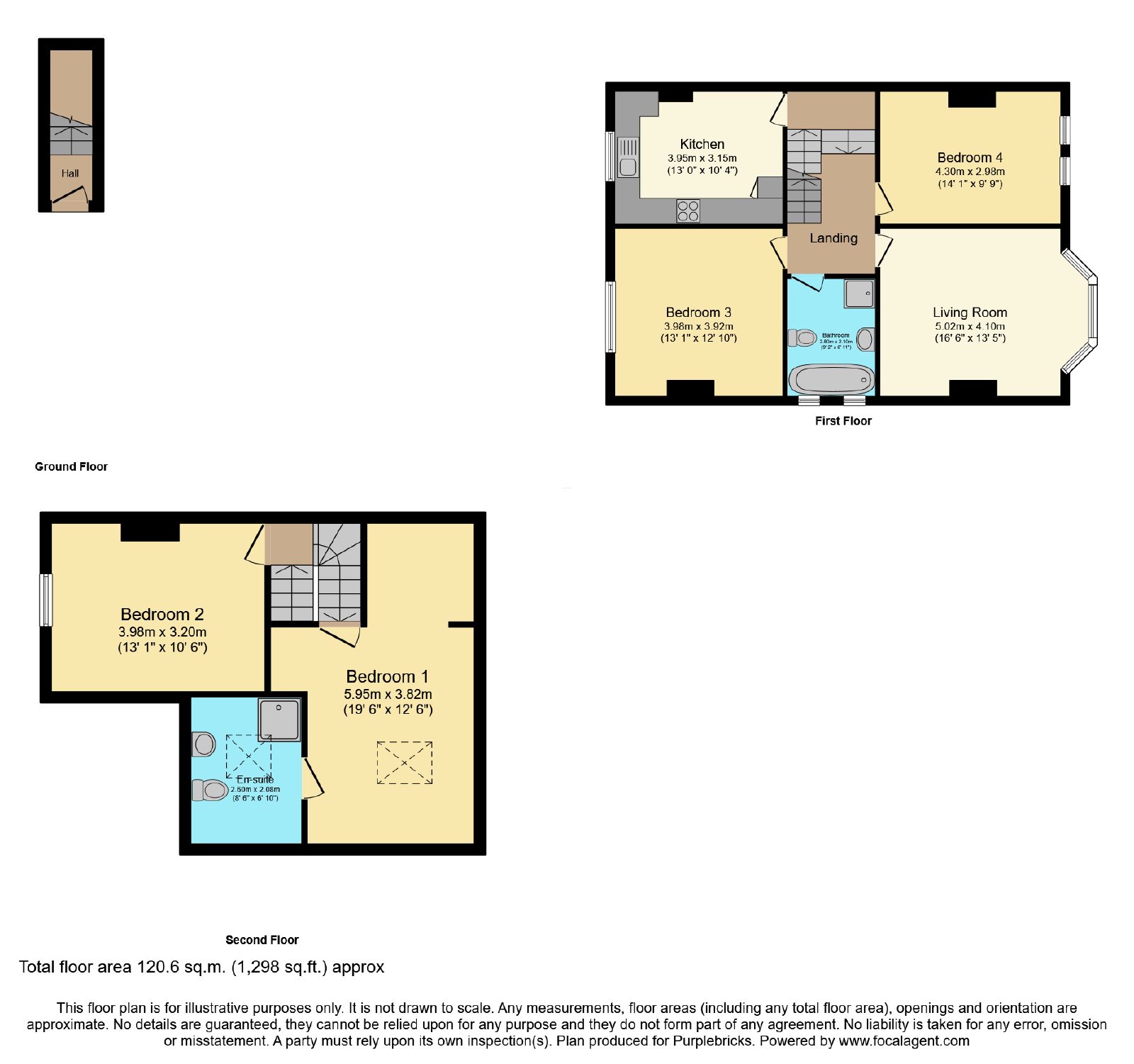 Welcome to Linden Road, a stylish and well-proportioned three-storey residence located in the heart of Bristol’s sought-after BS6 postcode. With a total floor area of approximately 120.6 sq. m (1,298 sq. ft), this thoughtfully designed home offers spacious living across the upper two floors. The First Floor is the social and functional hub of the home. It features a bright and generously sized living room - perfect for relaxing or entertaining. The modern kitchen is well-equipped and conveniently located adjacent to the third bedroom. The fourth bedroom is ideal for use as a guest room, nursery, or home office. A stylish family bathroom (2.8m x2.10m) completes this level, offering comfort and convenience. Upstairs, the Second Floor is dedicated to private living, with a luxurious master bedroom (5.95m x 3.82m) featuring its own en-suite shower room (2.6m x 2.08m), providing a peaceful retreat. A second double bedroom of equal size is also located on this floor, offering flexibility for families or sharers. Positioned in a leafy, well-connected area of Bristol, the property benefits from close proximity to independent shops, cafés, green spaces, and excellent transport links. Whether you're a growing family, professional couple, or investor, 54 Linden Road offers a rare blend of space, style, and location—making it a truly exceptional place to call home.
