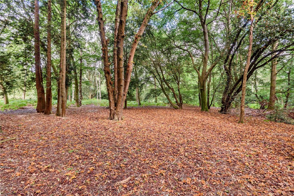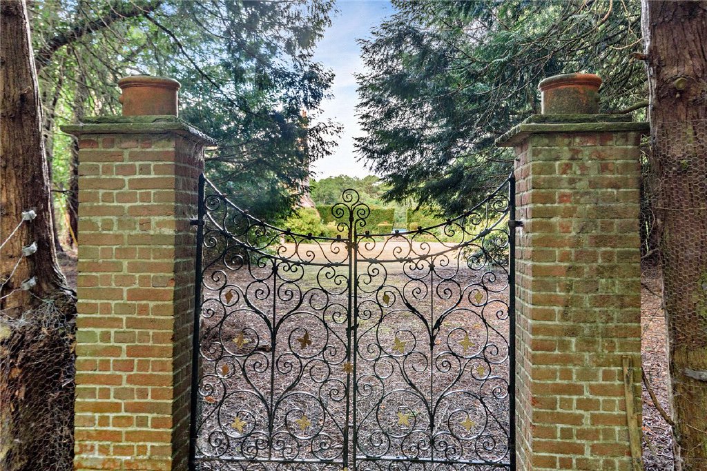 The property is approached from the road via a long driveway, which opens onto a gravel parking and turning area, with space for several vehicles. To the side of the house is the entrance to the central paved courtyard, with its garaging block for further parking for 3 cars or storage, and several additional buildings and stores. The gardens and grounds surrounding the house include rolling lawns and meadows, surrounded by the mature woodland of Bowdown Woods, which is managed by the Berkshire Buckinghamshire and Oxfordshire Wildlife Trust. The grounds exclusive to Bowdown Lodge total approximately 3 acres.