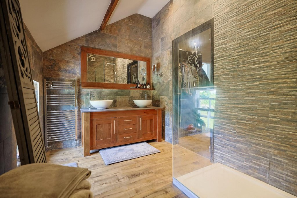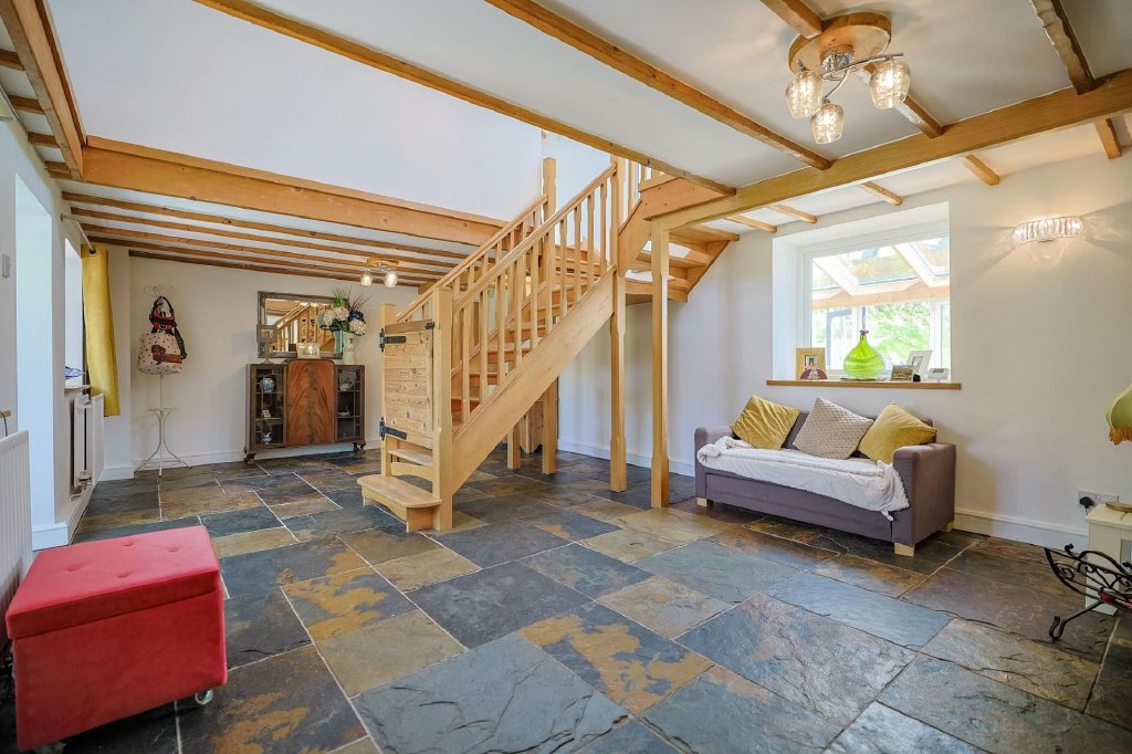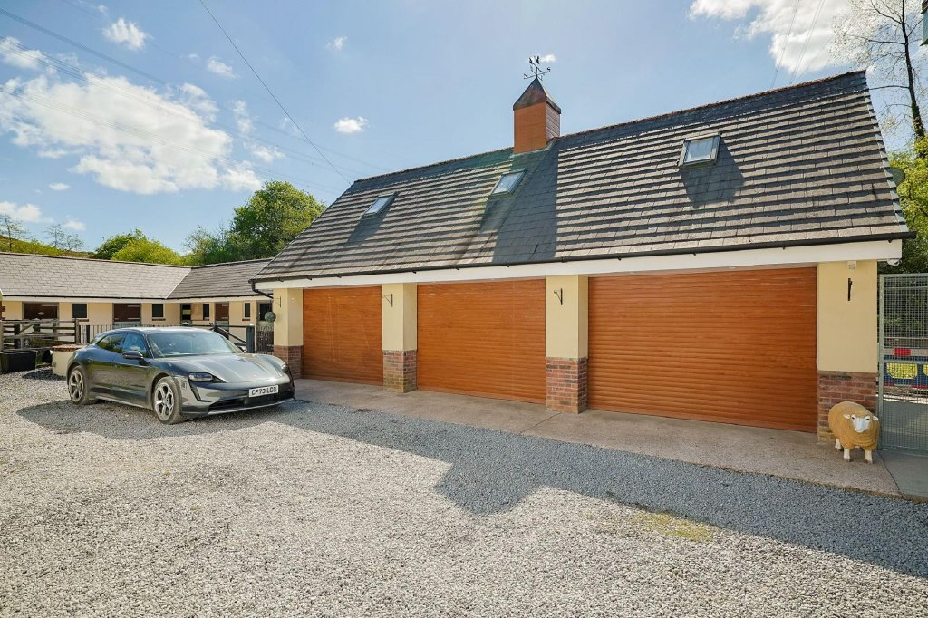 Approach Travel down a scenic country lane to a five-bar gate, followed by a grand electric gated entrance that welcomes you into the grounds. A charming stone chip driveway bordered with mature apple and pear trees and level lawns leads you to the stunning stone-fronted cottage. Parking is plentiful, with space for several vehicles and a detached two-storey triple garage providing further versatility.