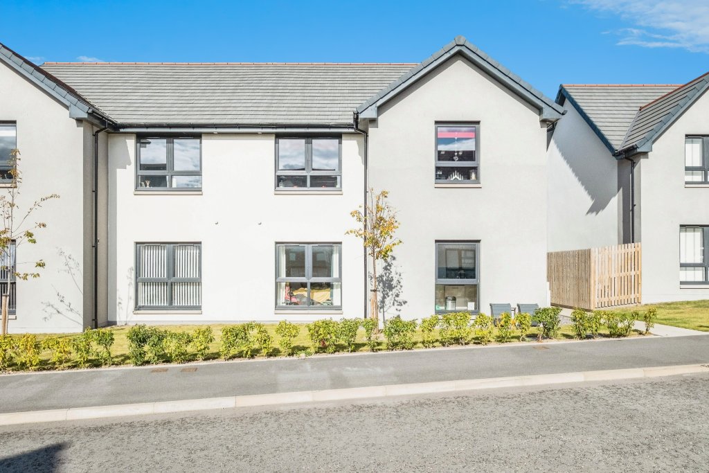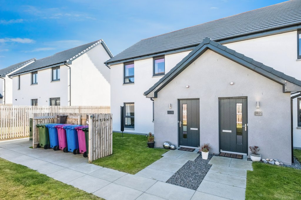 Fantastic opportunity to purchase this well presented walk in ready two bedroom top floor apartment in quiet residential area of Forres. Accommodation comprises ~ Bright entrance hall with window and storage cupboard with the stairs leading to the first floor. Off the landing on the first floor is the open plan living area to the right incorporating a comfortable carpeted lounge area with large window to the front and neutral decor. The kitchen dining area has wood effect flooring with ample white wall and base units topped with a white worktop. Integrated appliances include a washer/dryer, fridge freezer, electric oven and hob. The sink also benefits from a fitted Quooker tap for instant boiling water. The kitchen houses the hybrid boiler and a good dining space in front of the large window. Further along the hall on the right is a stylish bathroom with tiled splash back, bath with shower overhead and wood effect vanity unit and heated towel rail. A full length cupboard provides storage at the end of the hall. On the opposite side of the hallway are the two double bedrooms both with mirrored built in wardrobes and neutral decor. This flat is move in ready and will appeal to first time buyers and rental investors alike. Located in a sought after residential area of Forres, a historic town with plenty to offer including a vibrant town centre for shopping and convenient access to essential amenities and public transport links. The beautiful Moray coast is also a short drive away. Viewing is highly recommended. To book a viewing visit Purplebricks website or download the app. **Offers can be submitted through the online brochure in the first instance with acceptable offers formalised in writing from a solicitor to [email protected] **