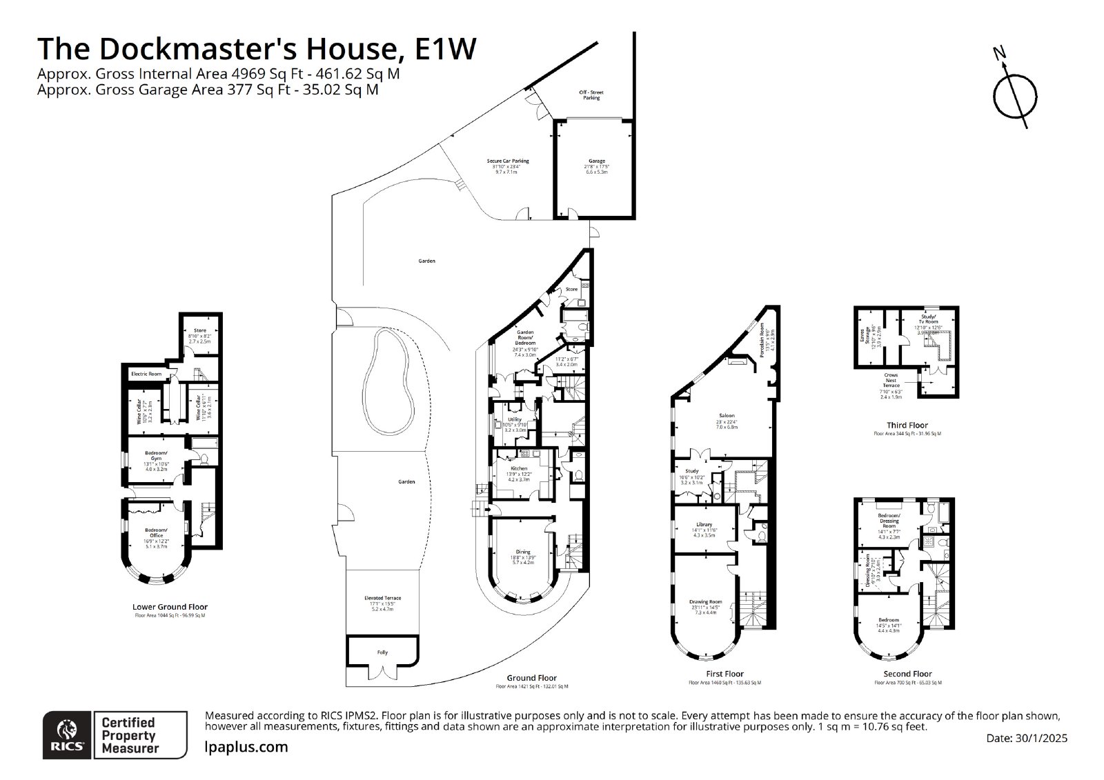 Pedestrian and vehicular access to the rear from Tower Hill is via the ‘Red Bridge’ over the lock, which, as it can be raised, is rather like a draw bridge over a castle’s moat. From the other side, the entrance to St. Katharine’s Way is protected by an automated barrier with numberplate recognition and an intercom to the dock security office so guests can obtain access. Turning off St. Katharine’s Way there is a large private off-street parking area which leads to a double garage and through gates to a spacious secure walled yard offering further space for multiple car parking. Here there may be scope to roof-over to create a single-story building which could be used for recreational, luxury garaging, security or domestic staff accommodation, or many other uses – this is very unusual for London.