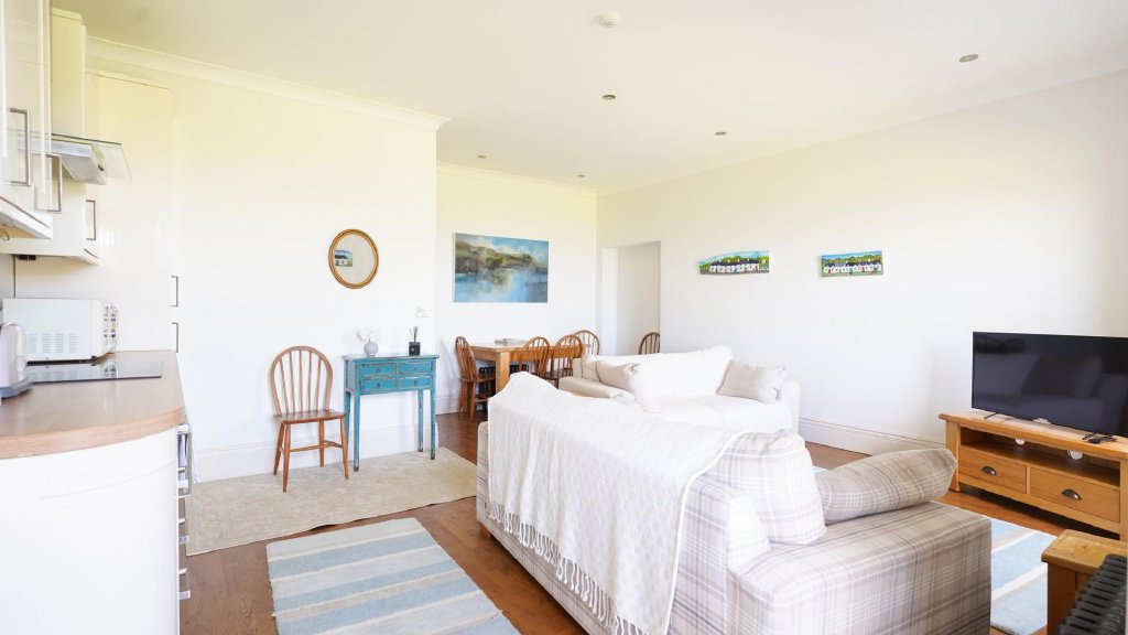 Flat 11, Plas Tan Y Bwlch is a beautifully presented one-bedroom apartment forming part of a striking historic mansion conversion overlooking Cardigan Bay. Once a grand residence, the building has been sympathetically restored to retain its period character, with original architectural detailing, sash-style windows and landscaped communal grounds, while offering the comfort and convenience of modern living.