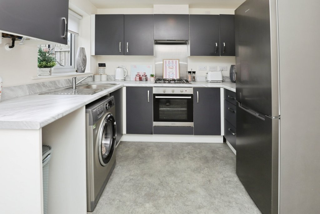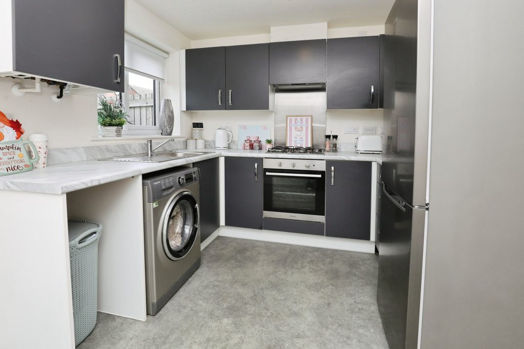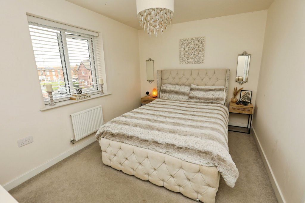 Set on Hammond Drive, this modern mid-town house offers a well-planned layout, a private rear garden, and the convenience of off-road parking, making it an ideal choice for a variety of buyers. The property opens with an entrance porch leading into a bright, front-facing lounge – a welcoming space that sets the tone for the rest of the home. A handy W.C. adds practicality before you step through to the rear, where the fitted kitchen and dining area span the width of the house. With patio doors opening directly onto the garden, this space is filled with natural light and works perfectly for both everyday meals and entertaining. Upstairs, there are two bedrooms, each well sized and adaptable depending on your needs. They are served by a family bathroom, keeping everything simple and functional. Externally, the property is set back by a driveway to the front, providing off-road parking. To the rear, a private enclosed garden offers both lawn and patio areas – a lovely spot to relax, play, or entertain in the warmer months. Hammond Drive is well positioned for access to local amenities, schools, and transport links. Liverpool John Lennon Airport is nearby, and excellent road connections make commuting into the city centre or further afield straightforward. Green spaces and local parks are also within easy reach, providing a good balance to the convenience of the location. With its modern layout, private garden, and parking, this home is ready to step into and enjoy, while also offering scope to personalise over time.