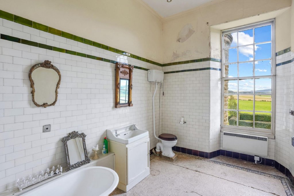 The second floor includes an expanse of undeveloped space with original wooden floors and exposed stone walls, ideal for creating further accommodation or leisure facilities. Twin hot water cylinders serve the first-floor bathrooms. At the very top, a charming tower room with curving bay window and porthole windows delivers panoramic views southward across the estate and loch. Note these are in need of extensive renovations, the potential however is endless.